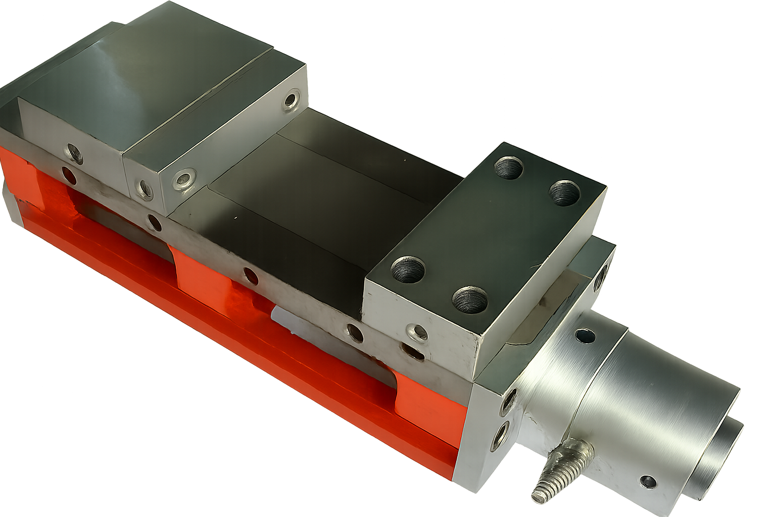 Grip down Vises have been engineered to be the ideal solution for work holding for heavy machining. Available in sizes up to 300 mm widths, these vises can accommodate a wide variety of workpiece. The special long box nut produced from wear resisting material feature to minimize jaw wear and to avoids component lift. Initial clamping is done mechanically through handle and final clamping through hydraulic.